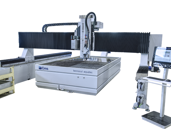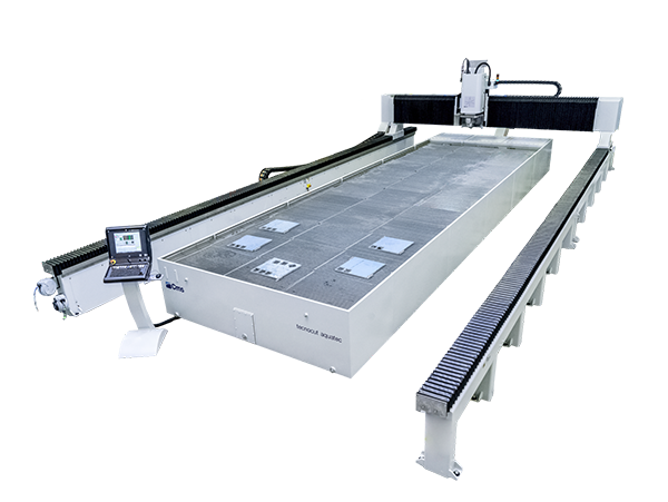 Aquatec is an advanced, versatile, high-performance abrasive waterjet cutting system, able to accommodate the most diverse production demands in different application fields, delivering highly accurate cuts. The machine consists of a mobile bridge moving along separate highthickness steel supports, fastened to the floor and providing outstanding structural rigidity. This structure delivers high performances even by the most demanding tasks.