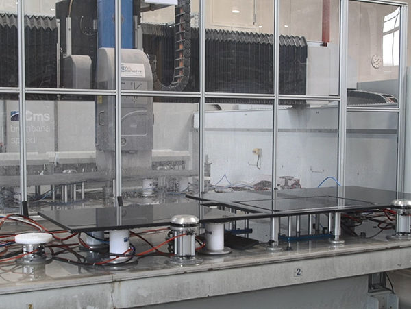 brembana speed TR is a Numerically Controlled Machining Center with rotating table and three/four interpolated axes suitable for processing both slabs and blocks even with high thickness in marble, granite, composite stone, and ceramic. It can perform each type of raw and polished contouring, as well as milling, drilling, countersinking, bas relief, and writing. Working plane with rotary table allows pendular working mode, resetting downtimes for loading / unloading operations. This machine can be customized to the customer's needs, it is the winning solution for every fabshop.