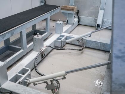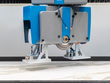 The weight of the machine, up to 5.1 tons, ensure perfect rigidity for the production of kitchen countertops, vanity tops, wall panels for interiors and exteriors, flooring, street furniture, doorsteps, staircases, and thresholds.