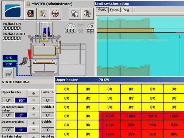 Le logiciel de supervision, simple et intuitif, développé sur mesure pour le processus de thermoformage assure la gestion de tous les paramètres du processus. Il offre une réduction des délais d’apprentissage inférieurs de 53% par rapport aux autres solutions disponibles grâce, entre autres, aux fonctions de programmation guidée. Toutes les variables sont sauvegardées dans un programme unique assurant la répétabilité des résultats même après plusieurs années.