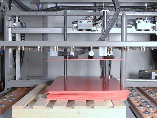 Gestion entièrement automatique du chargement de la plaque grâce à un système d’alignement et de centrage. Durant la phase de centrage, la plaque est légèrement soulevée afin de réduire la probabilité de rayer les surfaces polies. Le système laser d’identification des doubles plaques, muni d’une fonction de séparation, assure le chargement d’une seule plaque à la fois. Ainsi, les opérations de chargement et de déchargement sont fiables et sûres.
