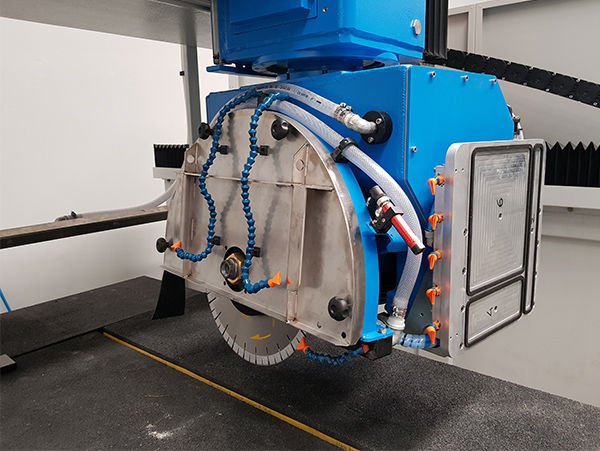 Formax桥锯是5轴内插轴数控切割中心,配有旋转头和固定工作台,可以对大理石板、花岗岩板、人造石板和陶瓷板以及石块进行任何类型的加工 ,例如切割(直切或成型切、垂直切或倾斜切)、3D轮廓描绘和切槽。